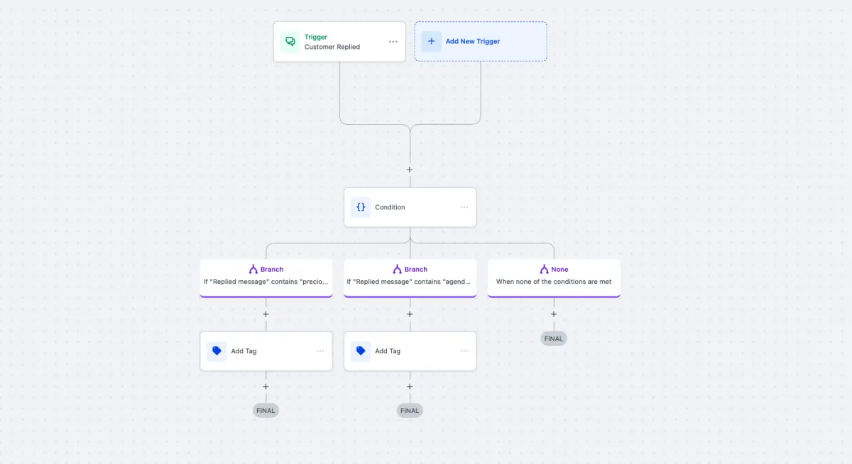 Workflows, triggers y campañas automatizadas por correo, SMS y redes sociales.